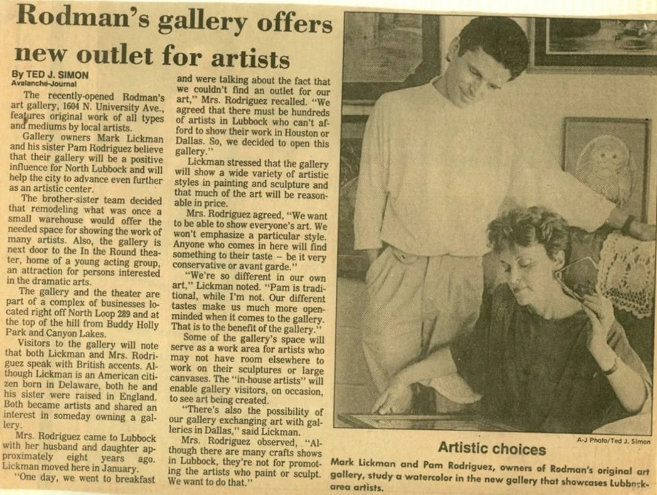 Markus co-owned Rodman’s Art Gallery in Lubbock, Texas with his sister Pam. The gallery showcased local artists and created work areas for artists of all levels. Markus loves creating a community wherever he goes and loves to help those in need, especially other artists.